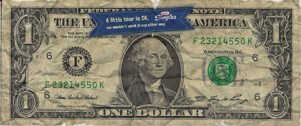 These dollars would be circulated and if used on a Kraft Single package, the customer would receive a dollar off.